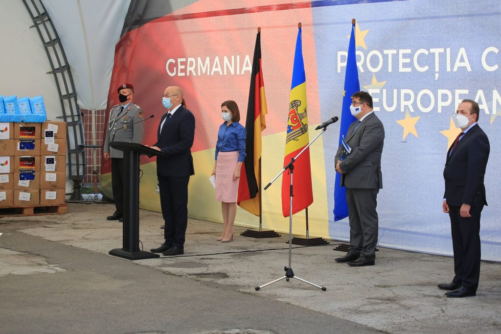 Prezentă la ceremonie, președintele Republicii Moldova, Maia Sandu, a menționat: „Ajutorul oferit astăzi este o dovadă în plus că Germania este un partener de încredere și un prieten adevărat al țării noastre. Grație acestei asistențe, instituțiile medico-sanitare din țară vor fi asigurate cu suficiente echipamente de protecție, iar medicii de la terapie intensivă, cu utilaje suplimentare pentru a salva vieți. Mulțumim Germaniei și Uniunii Europene pentru suportul continuu oferit Republicii Moldova”.